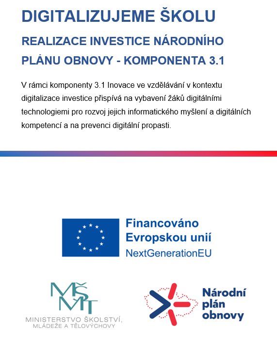 DIGITALIZUJEME ŠKOLU - Realizace investice 3.1 Národního plánu obnovy