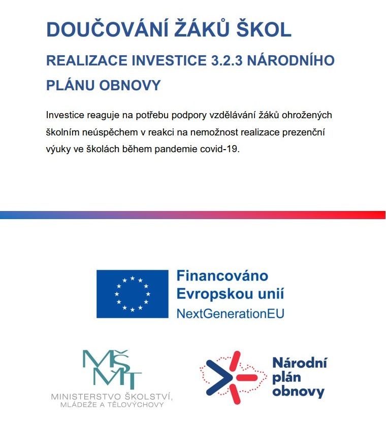 Doučování žáků škol – Realizace investice 3.2.3 Národního plánu obnovy
