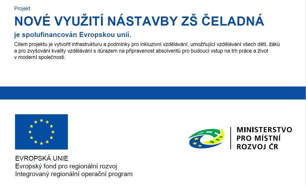 Základní škola Čeladná, příspěvková organizace je realizátorem projektu s názvem: ZŠ Čeladná - 2022; registrační číslo CZ.02.02.XX/00/22_002/0002236 v rámci Výzvy č. 02_22_002 Šablony pro MŠ a ZŠ I