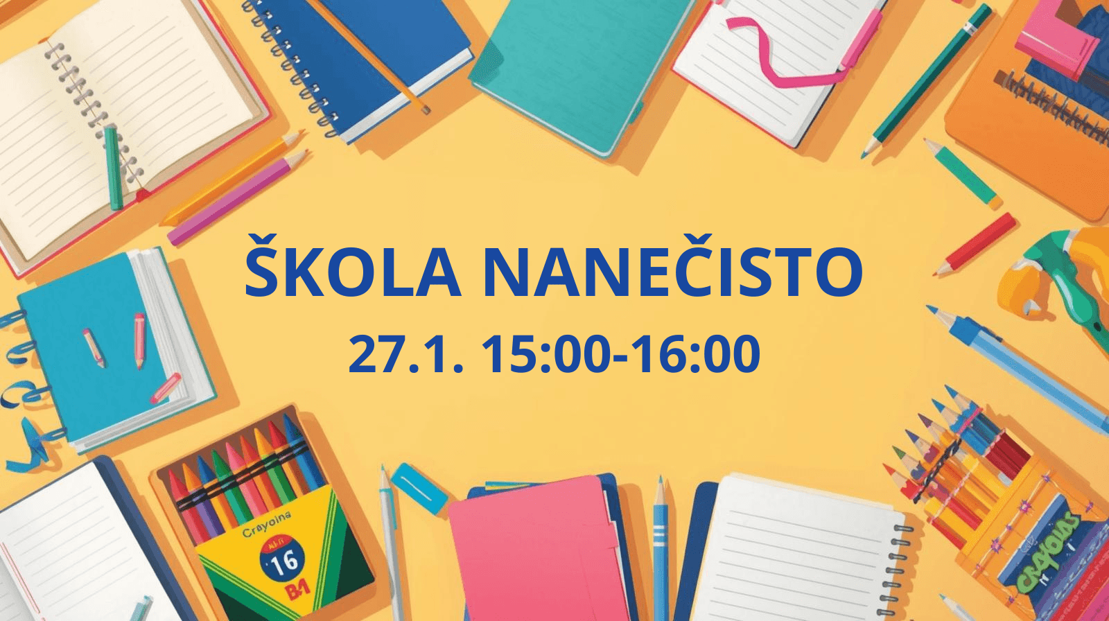 V letošním roce jsme se rozhodli uskutečnit akci pro prezentaci školy s názvem: Škola nanečisto. Odpoledne se společně setkáme s rodiči budoucích prvňáčků a jejich dětmi, které si vyzkoušejí, jaké to je být školákem. Zároveň zodpovíme dotazy rodičů k organizaci a uskutečníme prohlídku školy.